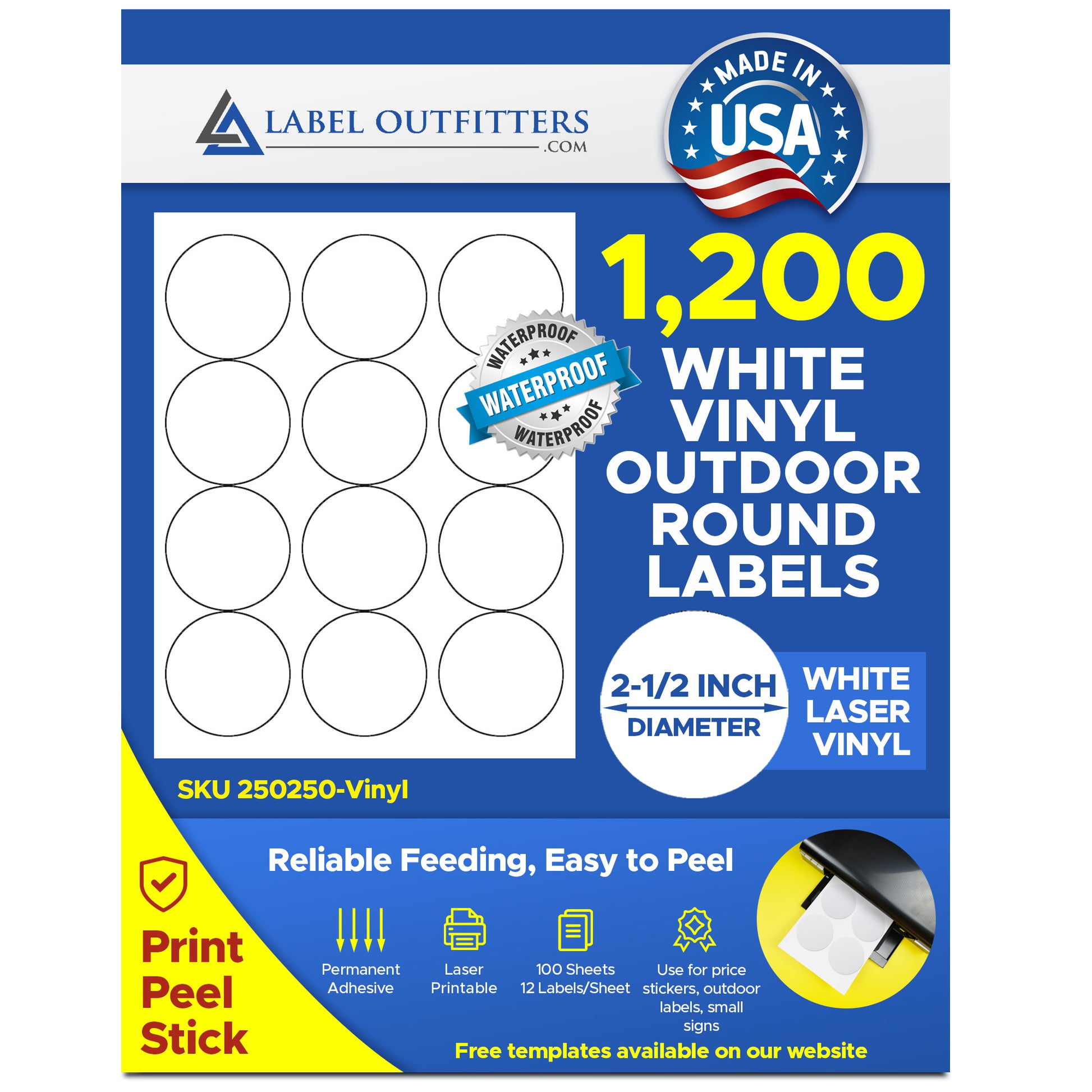 1,200 Heavy Duty White Vinyl Printable Outdoor Weatherproof Labels 2.5" 12 Labels per Sheet 100 Sheets