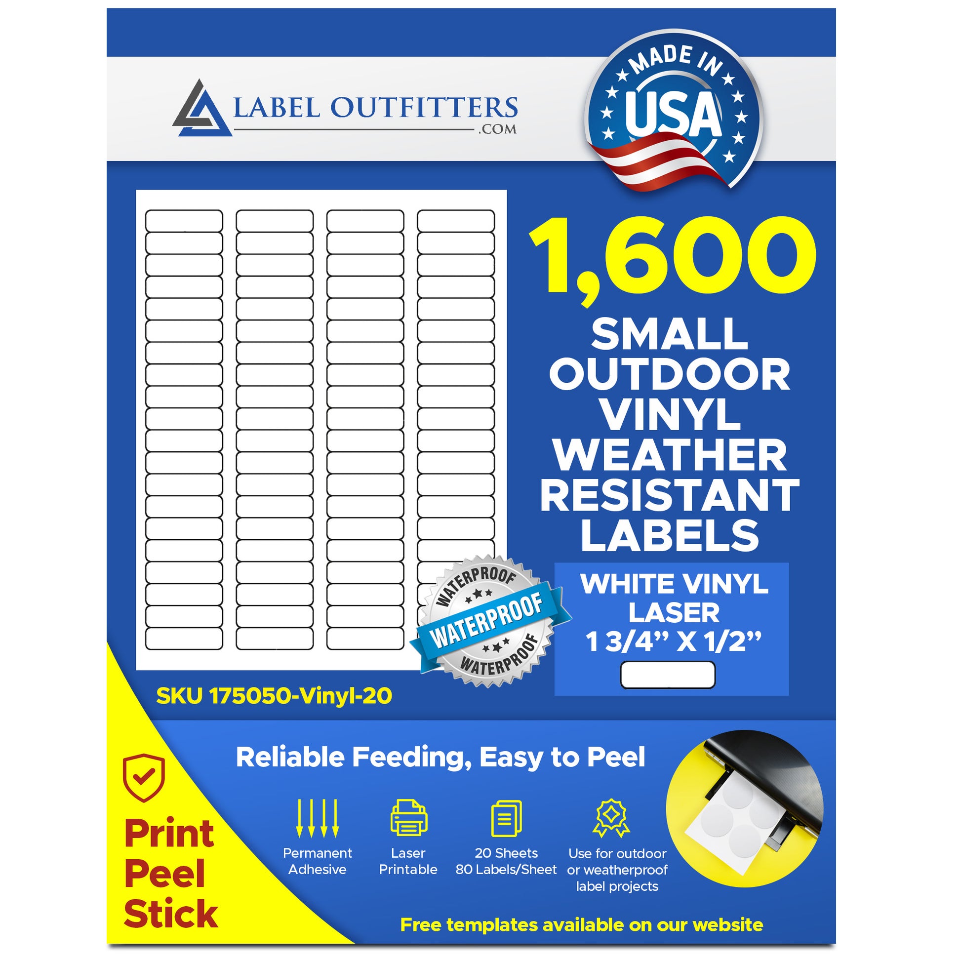 1,600 White Vinyl Laser ONLY Durable Labels WeatherProof and WaterProof, 1.75 x 0.5, use Avery® 5167 Template, 80 Labels per Sheet, 20 Sheets