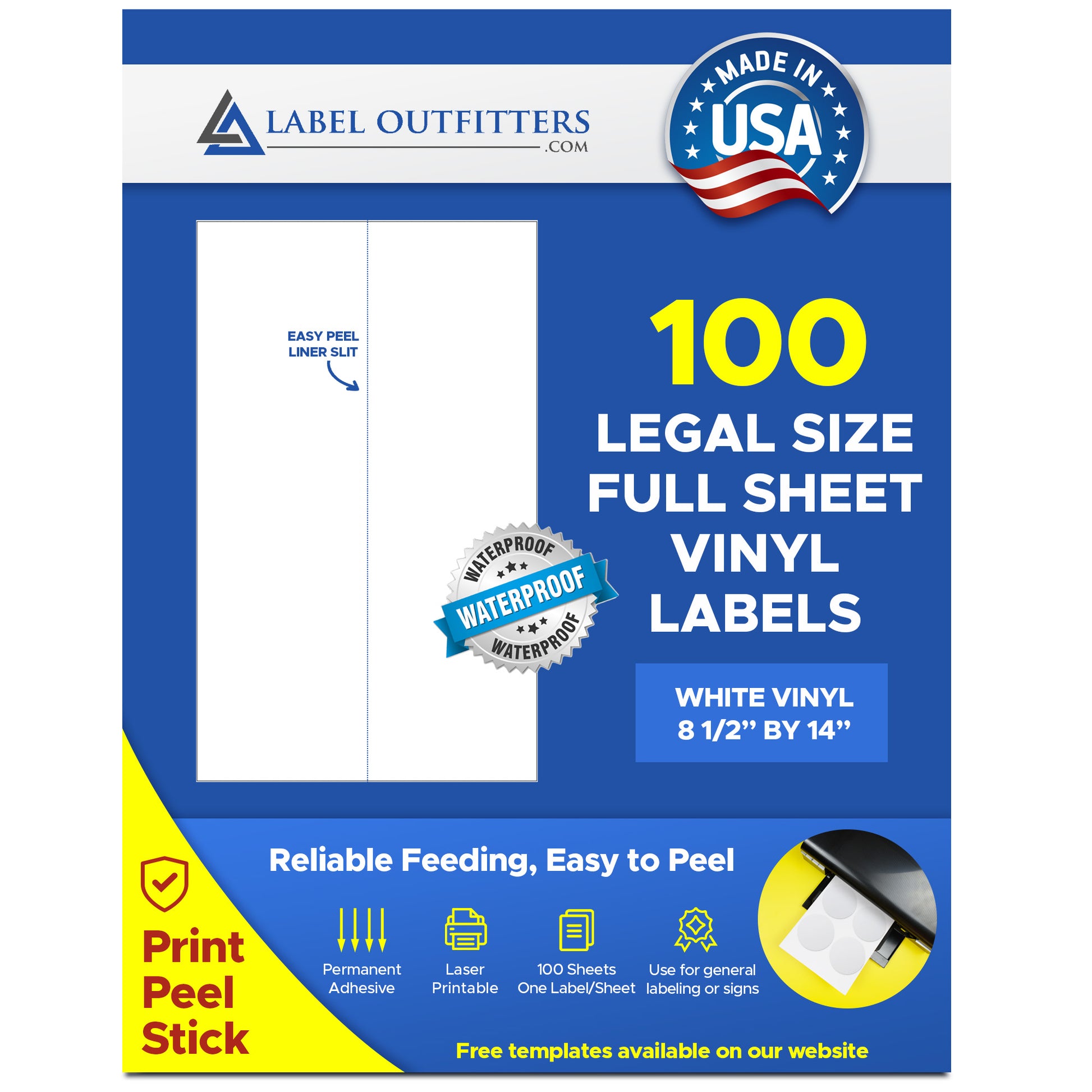 100 Very Large 8.5" x 14" White Laser Vinyl Heavy Duty Waterproof Labels One Label Per Sheet 100 Sheets
