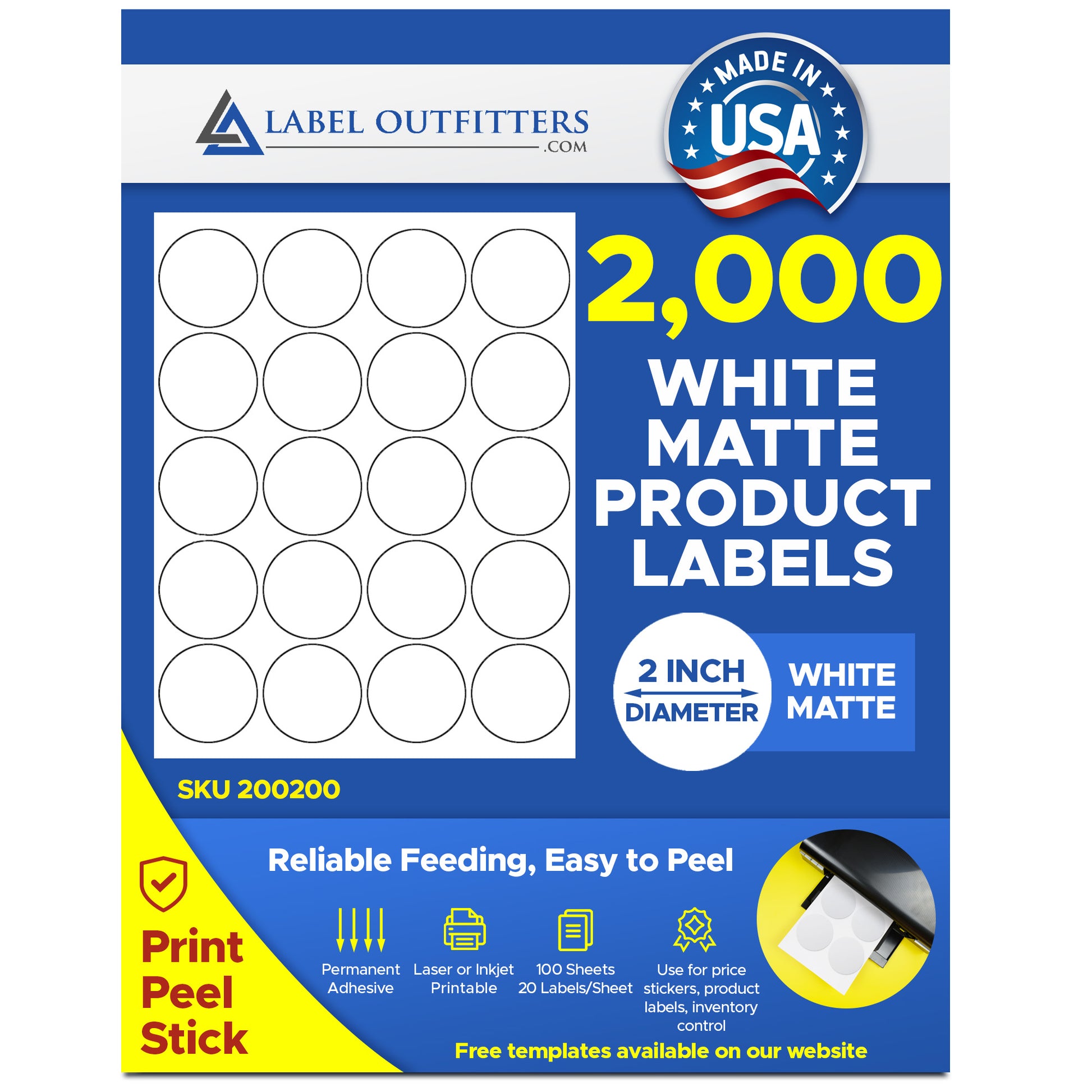 2,000 Matte White Laser & Inkjet Labels 2" Diameter Round