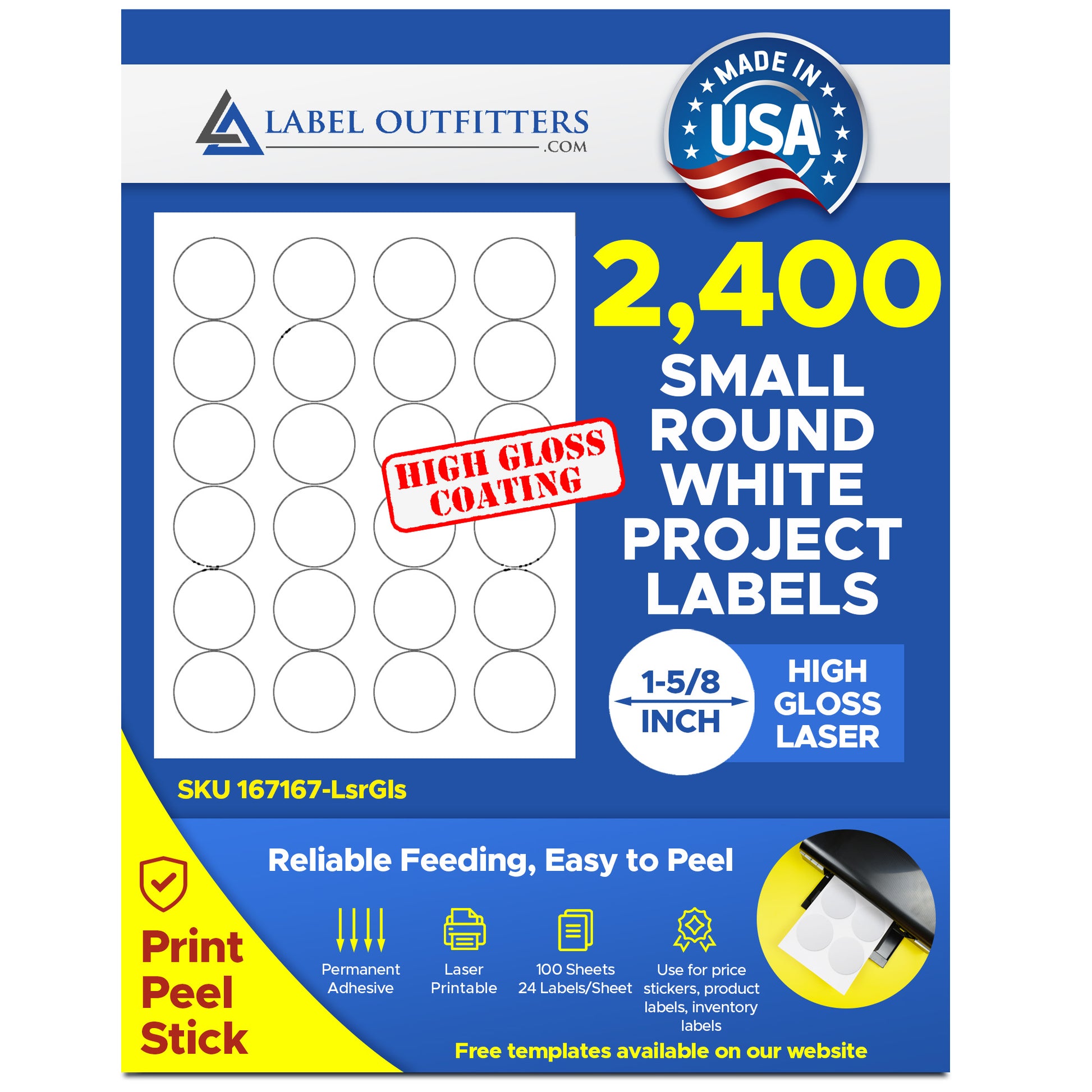 2,400 Round Labels 1-5/8 Diameter White Laser ONLY Glossy use Avery® 5293 Template