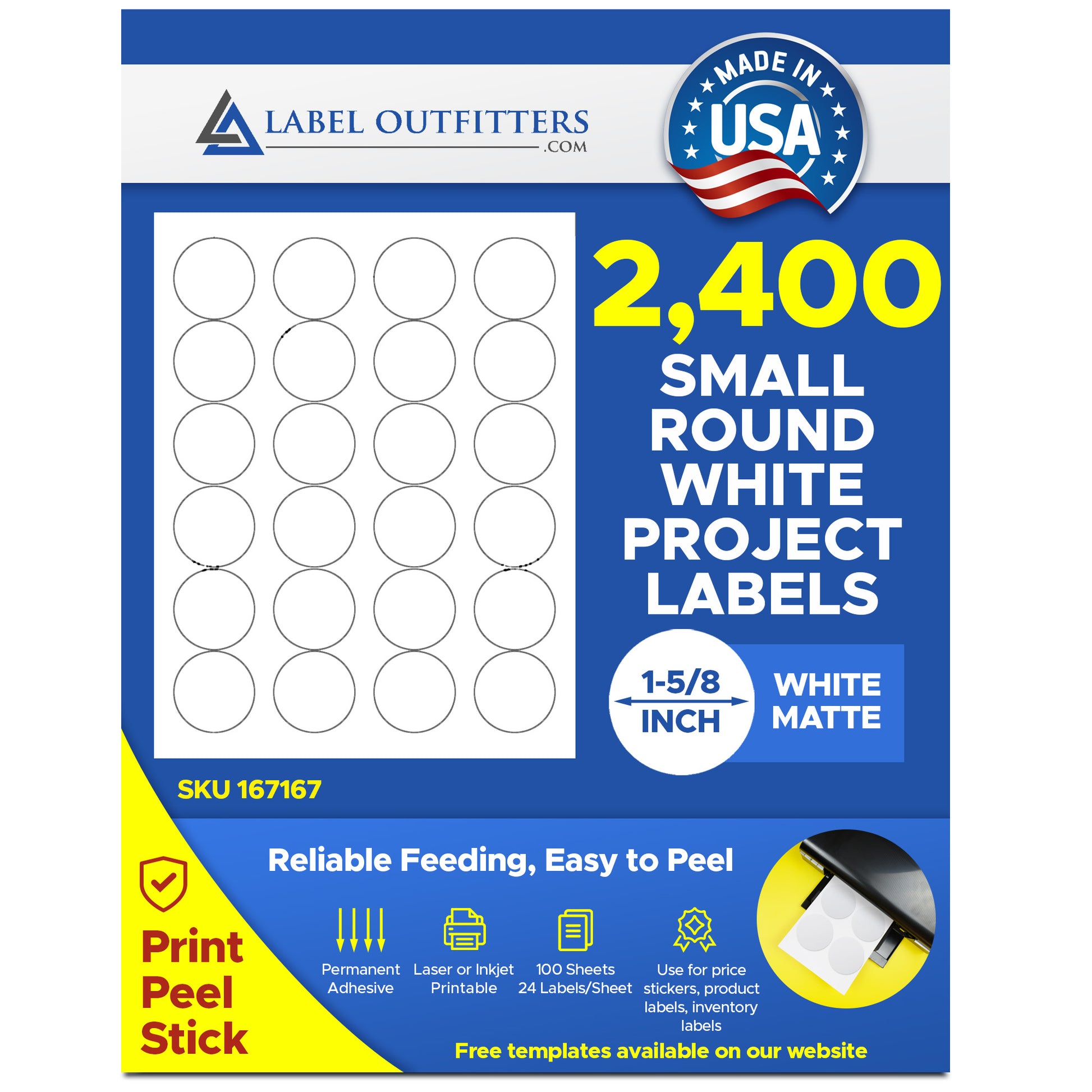 2,400 Round White Matte Labels 1-5/8 inch Diameter use Avery® 5193, 5293, Compulabel® 310307 Template Laser and Inkjet Printable Stickers, 100 Sheets