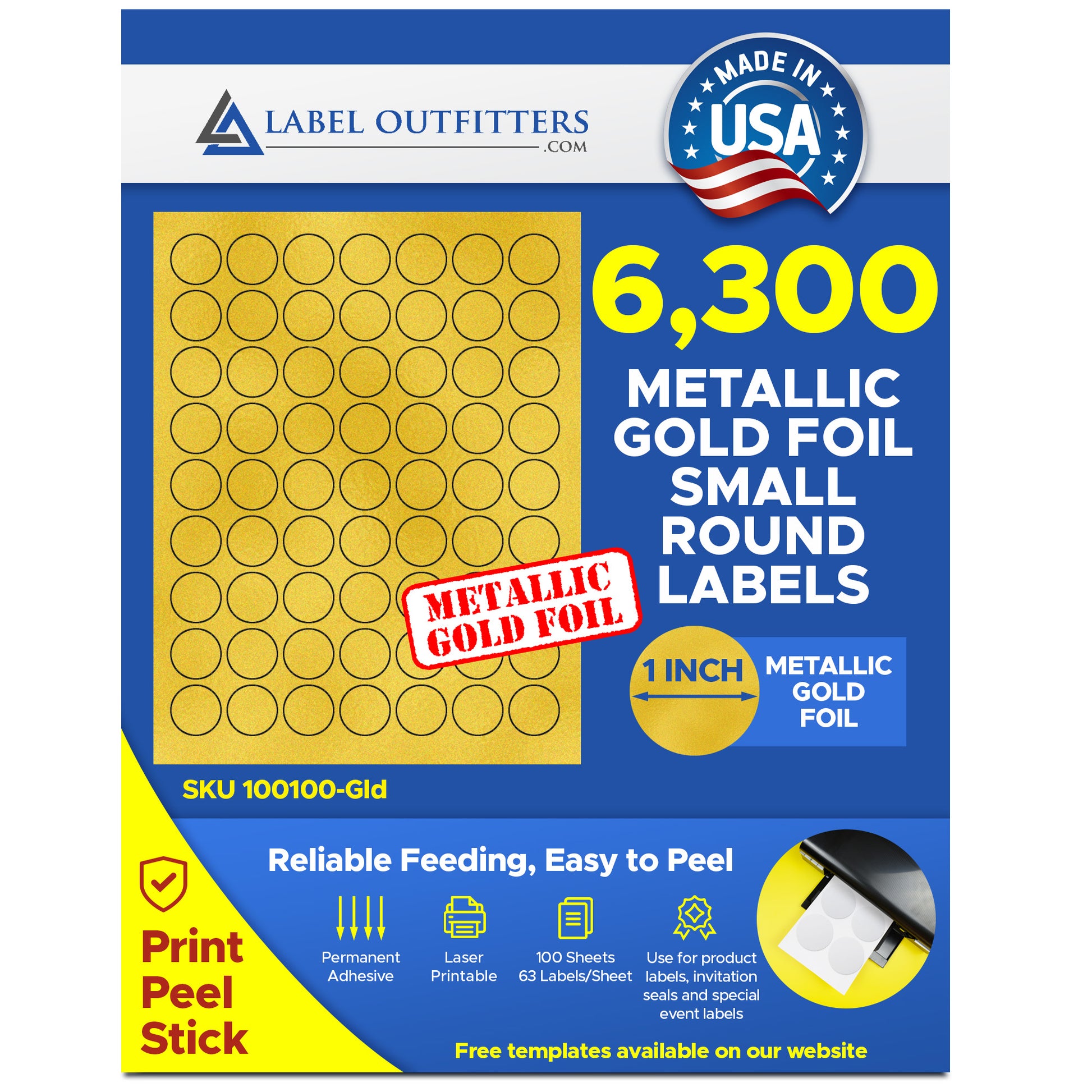 6,300 Small 1 Inch Diameter Gold Metallic Foil Laser Only Printable Round Labels or Stickers, 100 Sheets, 63 Labels per Sheet, 100 Sheets