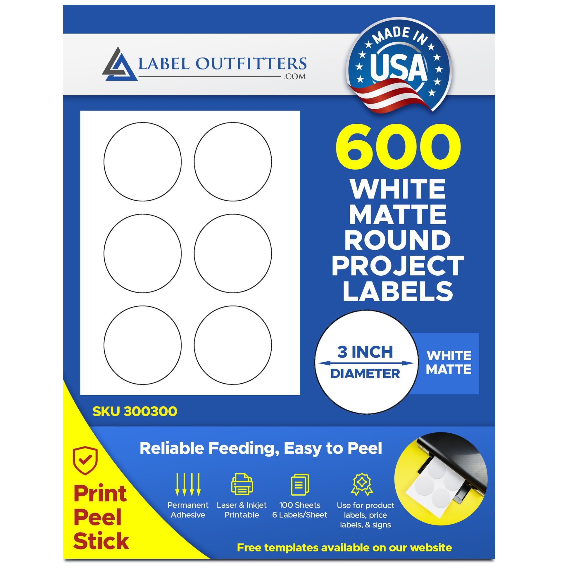 600 Round 3" Diameter White Matte Print to the Edge Labels 6 Labels Per Sheet 100 Sheets