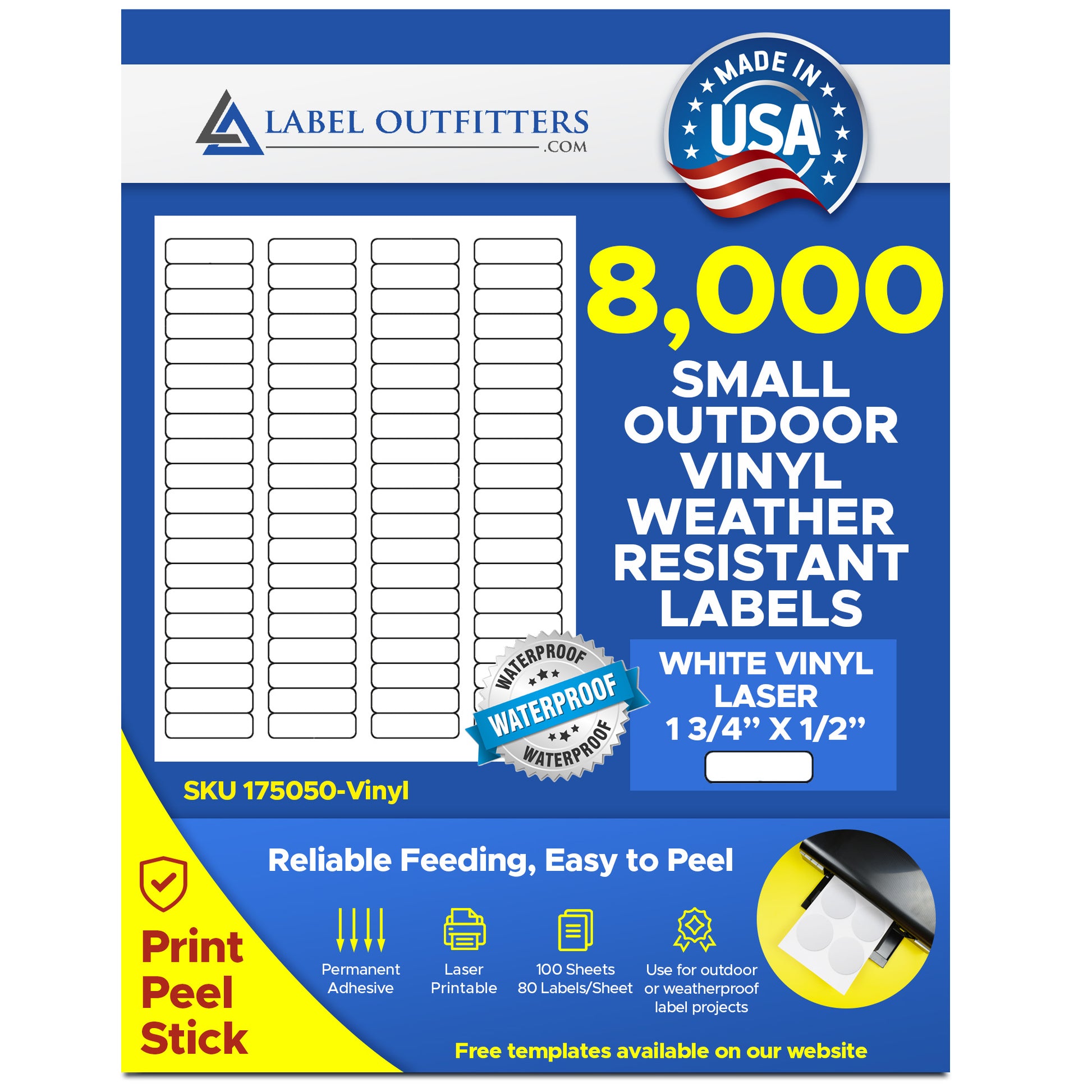 8,000 White Vinyl WaterProof and WeatherProof Laser ONLY Durable 1.75 x 0.5 Labels Avery® 5167 Format 80 Labels per Sheet, 100 Sheets
